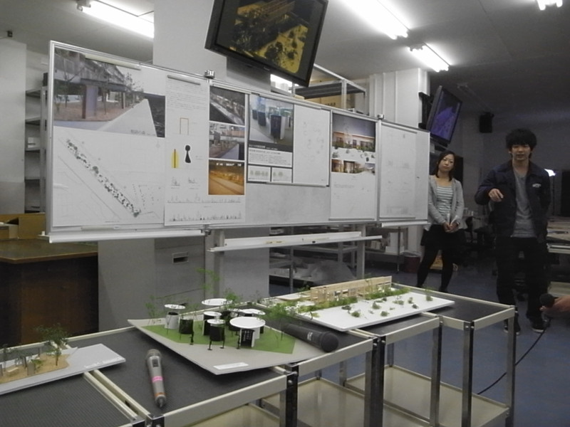 その後2スタジオの発表と講評が行われ、アシスタントの学生たちと各先生方からまとめの話しがあり、19:00前すべて終了。