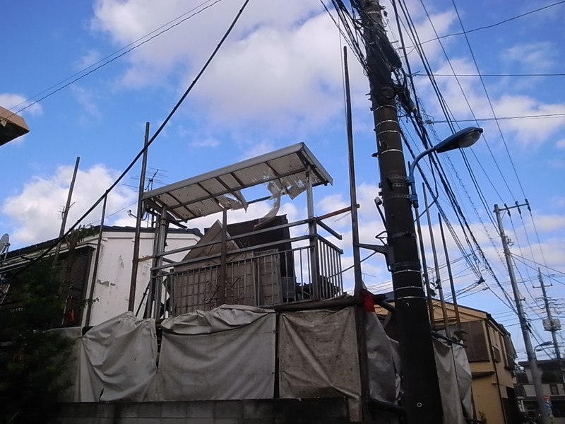 大和町の私道入り口の角のお宅の解体が始まり、妙な風景が。